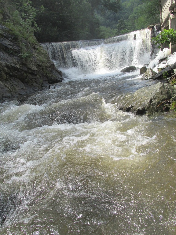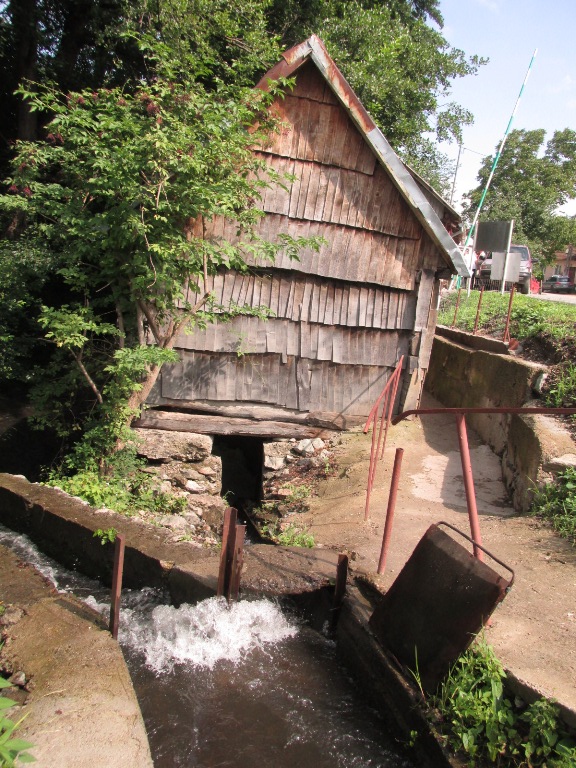 La exterior o roată mare e învârtită de cursul de apă, care cade de la 4-5 metri înălțime. Pentru a nu îngheța apa, iarna era acoperită cu coceni de porumb.