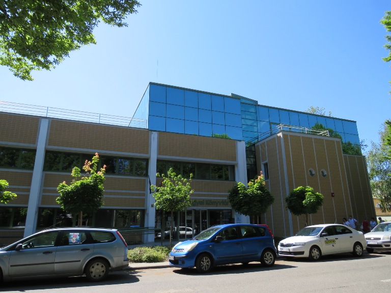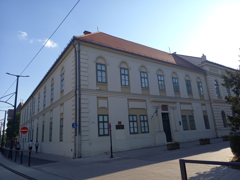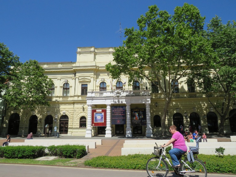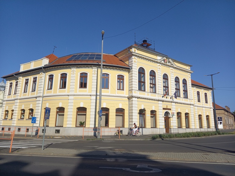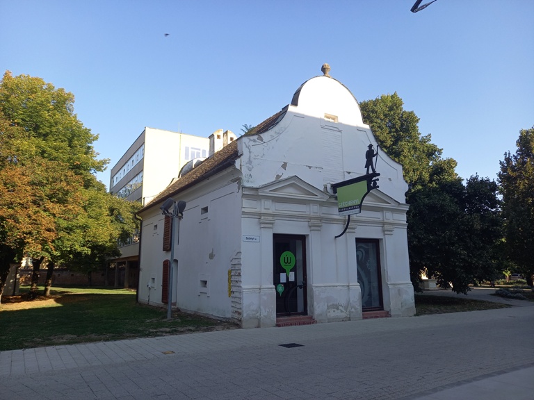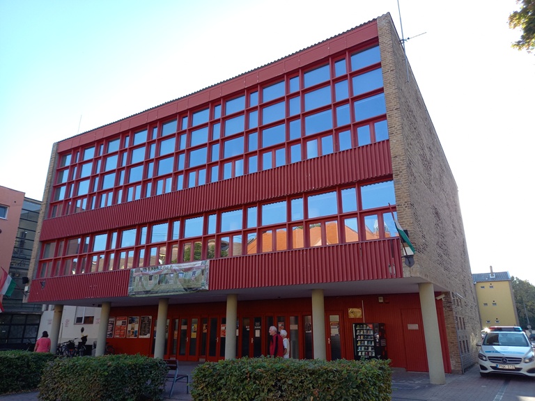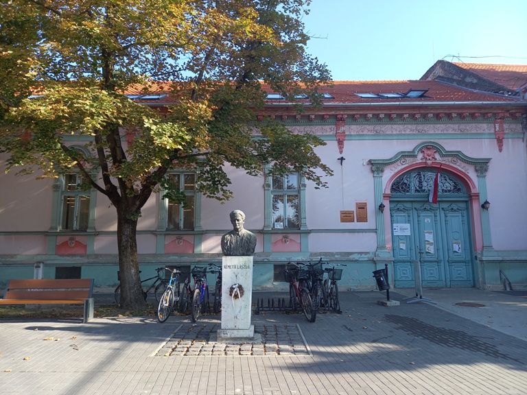 Vis a vis de ea se află Biblioteca locală László Németh și Biblioteca pentru copii Lajos Pósa (Németh László Városi Könyvtár és Pósa Lajos Gyermekkönyvtár). Deși în 1880 s-a dorit înființarea primei biblioteci publice din oraș, abia din 1907 a început să funcționeze, într-un apartament deținut de un funcționar al Primăriei, amenajat cu o sală de lectură și de unde, contra unei chitanțe, se puteau închiria cărți. Colecția de cărți crescând, în 1913 Primăria a cumpărat casa doctorului József Imre (azi Muzeul János Tornyai), în care s-au mutat biblioteca și muzeul orașului. În timpul Primului Război Mondial acestea au fost închise, apoi cărțile au fost mutate într-o casă achiziționată de comunitatea evreiască (1930).