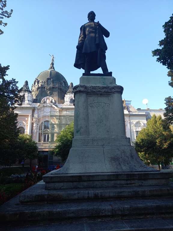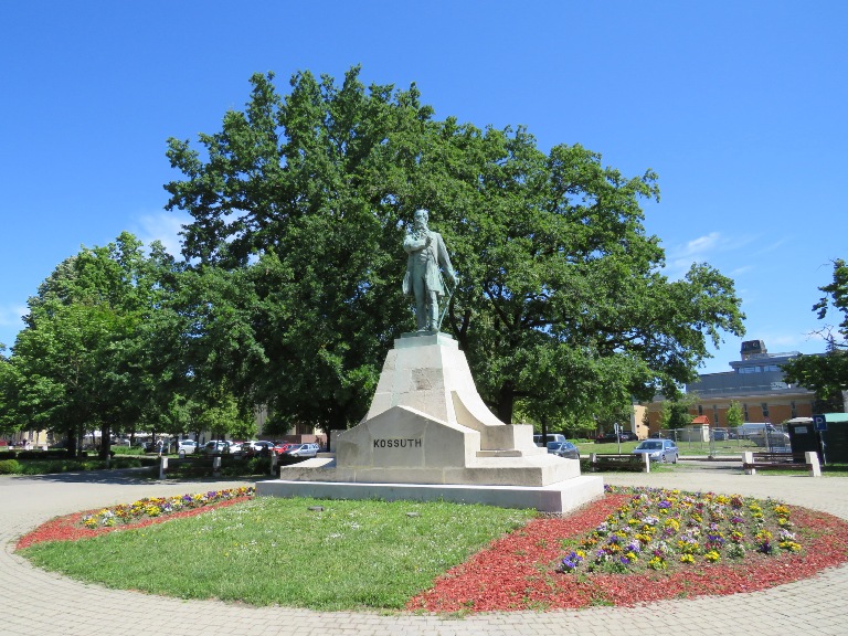 După ce Lajos Kossuth, guvernatorul Ungariei din timpul Revoluției de la 1848, a fost ales cetățean de onoare al orașului (1889), piața a primit numele lui, din 1892 devenind Piața Kossuth (Kossuth tér). În 1905 în piață a fostpostată statuia Kossuth Lajos. Creată din bronz, așezată pe un piedestal din piatră, în total măsurând 6 metri înălțime, îl prezintă pe Kssuth ținându-și mâna dreaptă la inimă, cea stângă fiind sprijinită de sabie. Azi statuia e înscrisă pe lista monumentelor istorice.