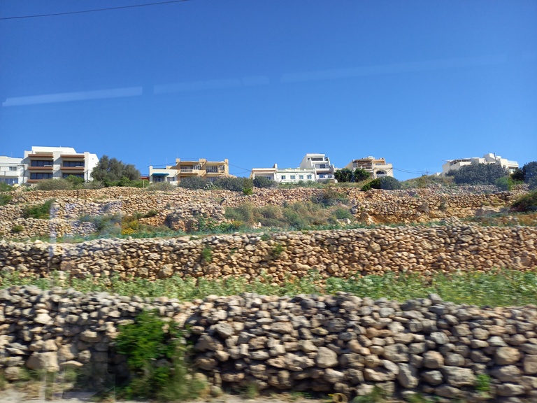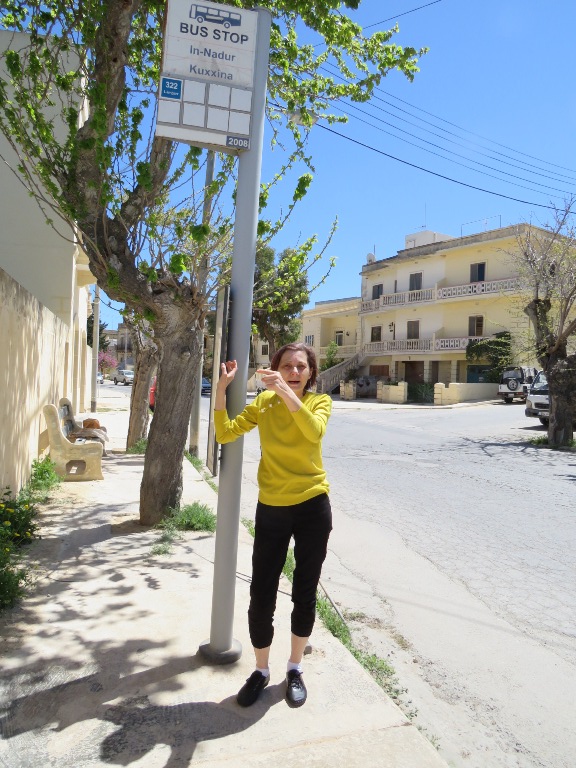 Am urcat pe o șosea, paralelă cu coasta, până la o stație de autobuz, unde am cam așteptat în zadar să apară unul. Doream să ajung la templele megalitice, cele mai vechi din Malta.
