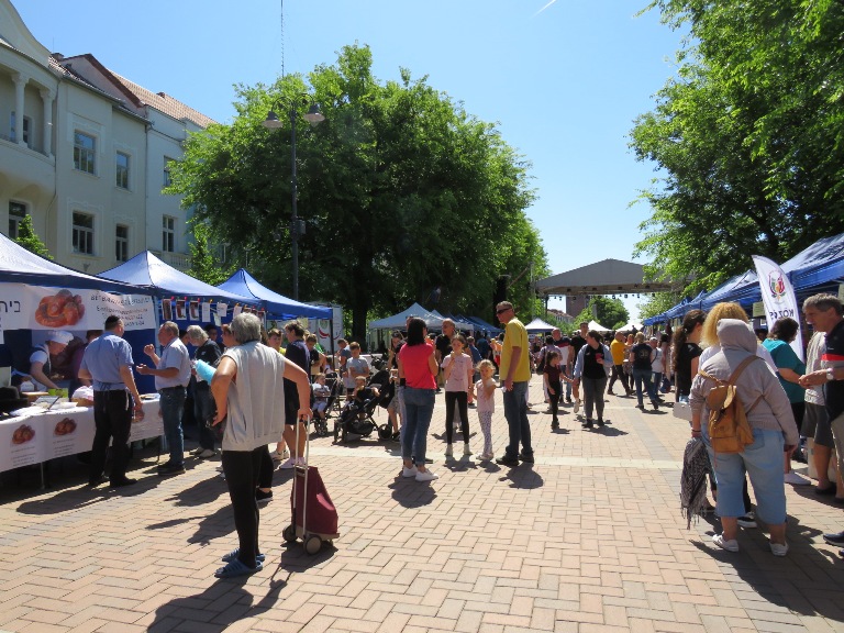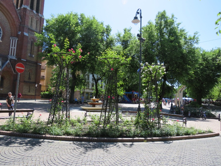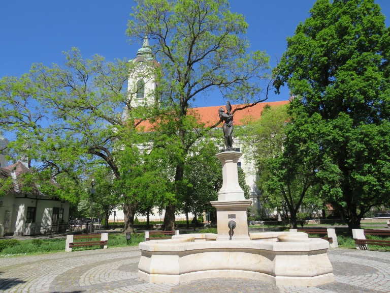 Pornind de la catedrală, azi se întinde Piața Szent István, cu străzile mărginite de clădiri de epocă și o alee pietonală centrală care, fiind 1 Mai, era foarte aglomerată, pe ea fiind plasate mai multe tonete cu diverse mărfuri.