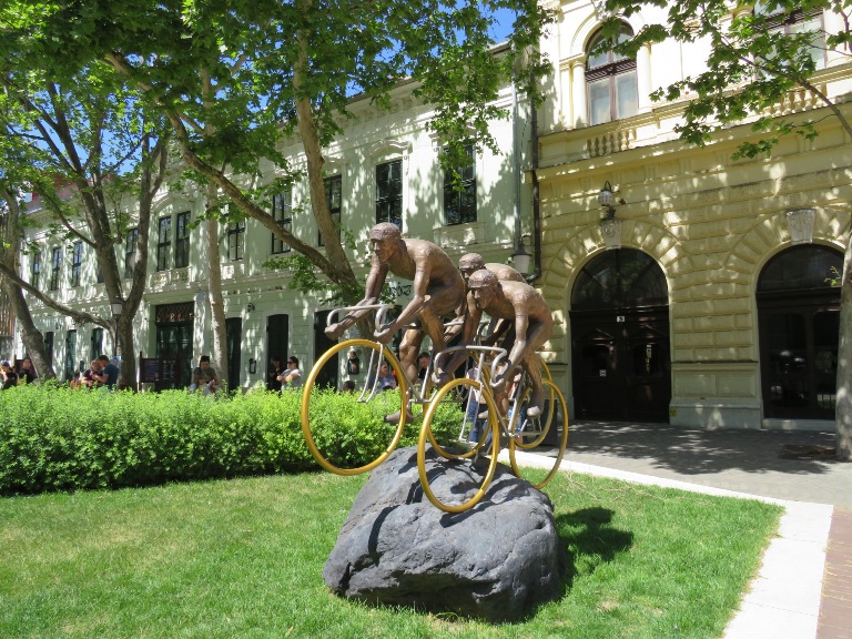 În spațiul verde din fața teatrului azi se află statuia Cicliștii Olimpici (Olimpia – Kerékpáros szobor), prezentând 3 cicliști pedalând, roțile bicicletelor simbolizând cele 5 inele olimpice. A fost dezvelită în 2021, o dată cu ceremonia de deschidere a Jocurilor Olimpice de la Tokyo, locația sa finală urmând să fie în fața Sălii de Sport, la acel moment în renovare.