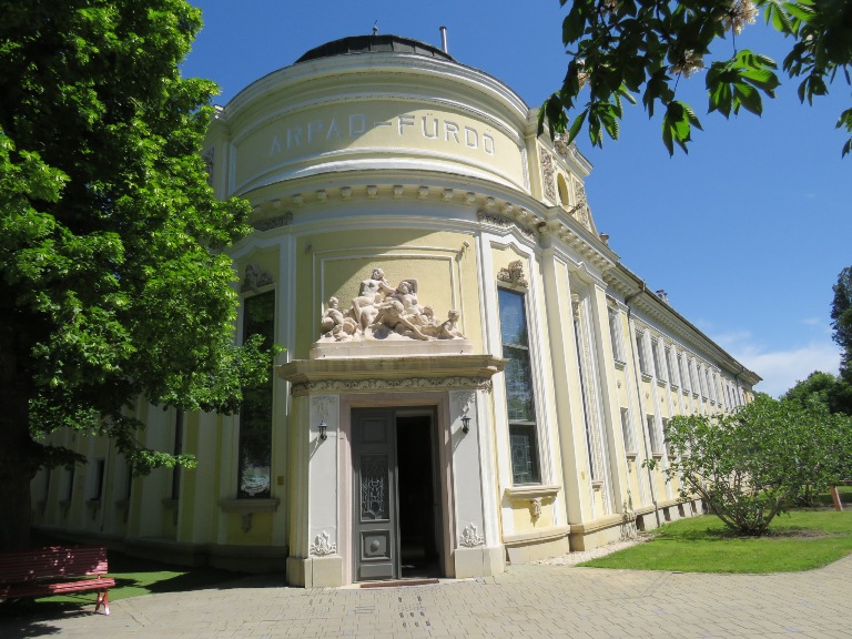 În 1927 s-a construit o clădire, în care s-a realizat o piscină, alimentată cu apă caldă de la baia de aburi de lângă ea. Pentru alimentarea cu apă a piscinei exterioare s-au forat mai multe fântâni. În 1964 s-a construit o piscină mai mare, Băile Árpád György (Árpád György fürdő) ajungând să acopere zona fostului parc, din care au supraviețuit puțini copaci.