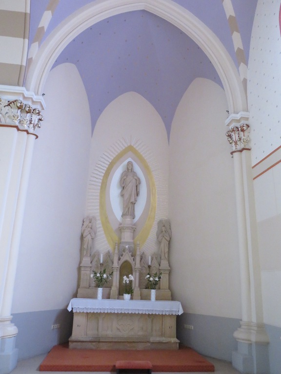Altarul principal a fost decorat cu statui, prezentându-i pe Sf. Anton, situat central, în dreapta lui Regele Sf. Ștefan și în stânga fiul său, Prințul Sf. Emeric.