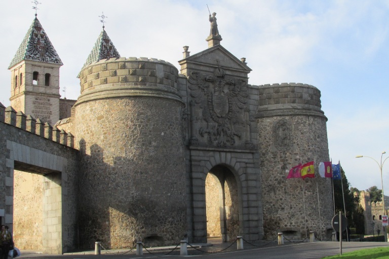 Am trecut fluviul și am început urcușul pe lângă zidurile fostei cetăți Toledo până la Poarta Nouă Bisagra (Puerta Nueva de Bisagra), una dintre porțile prin care se intra în cetate. A fost construită de mauri, reconstruită (1540-1576) din două corpuri separate între care s-a format o curte. În partea exterioară, între două turnuri circulare mari se afla un arc semicircular pe care era postată stema împăratului Carol V, un vultur cu două capete și deasupra, central, o statuie de înger. Spre interior pereții porții erau drepți și lateral se înălțau două turnuri pătrate.