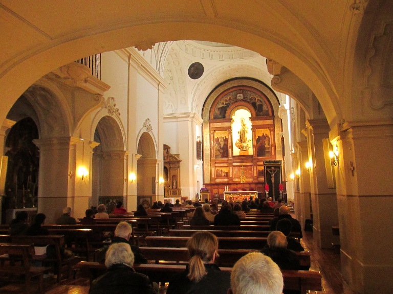 În interior, de-a lungul navei erau postate statuile celor 12 apostoli și în spatele altarului o frescă ce reprezenta coborârea Fecioarei asupra Sfântului Ildefonso. Biserica a intrat din nou în posesia iezuiților abia în secolul XX.
