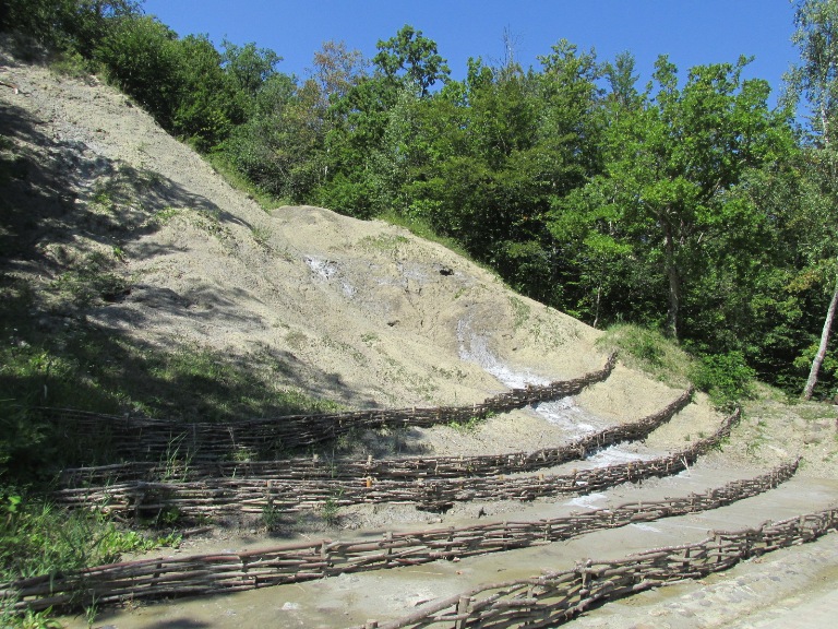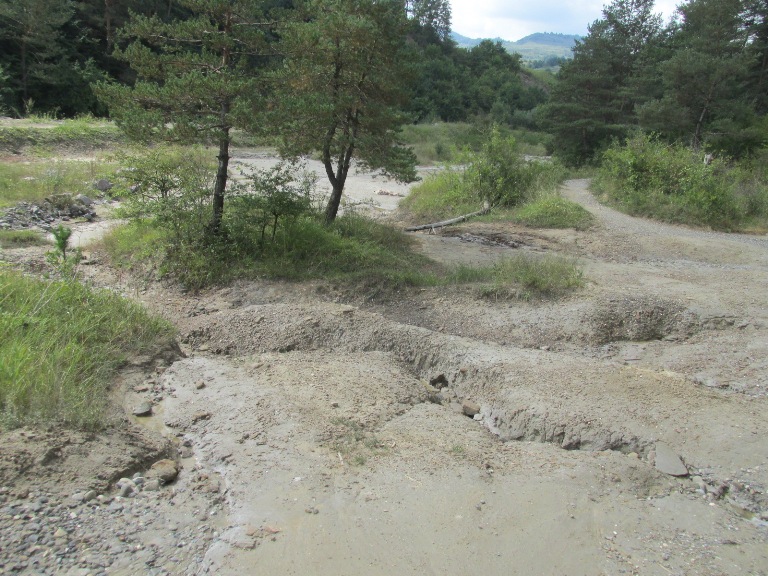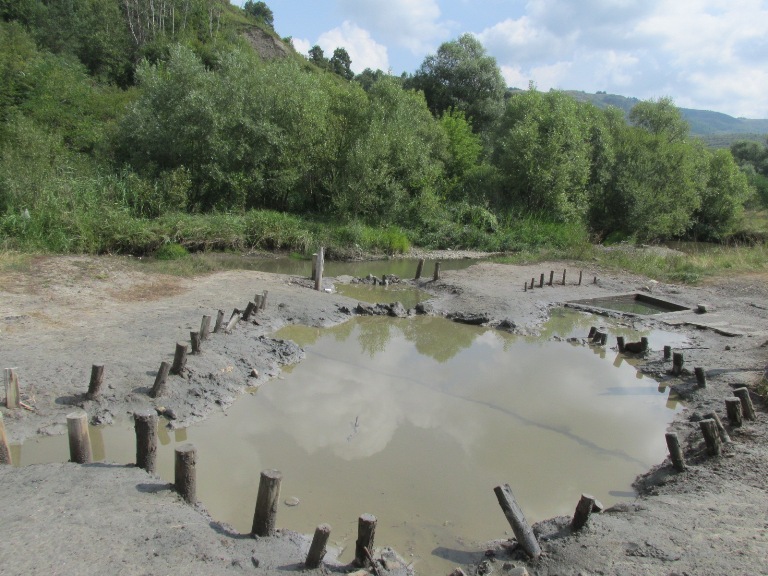 Am ajuns într-o zonă lipsită de vegetație unde se aflau câteva foișoare de lemn. Au fost amenajate pentru cei care folosesc băile cu nămol sărat în scop terapeutic.