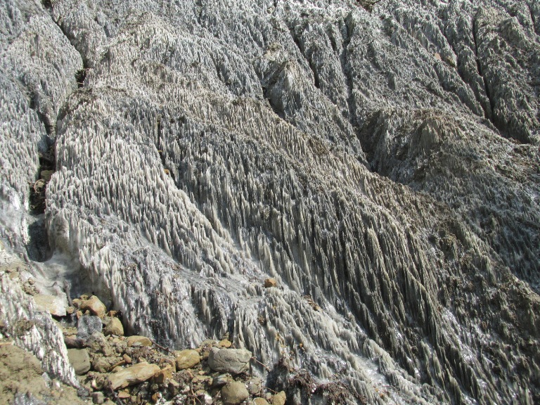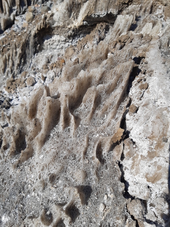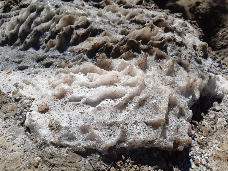 După câteva sute de metri am ajuns la lapiezuri, mici culmi formate prin erodarea sării, foarte solubilă, de apa ploilor.