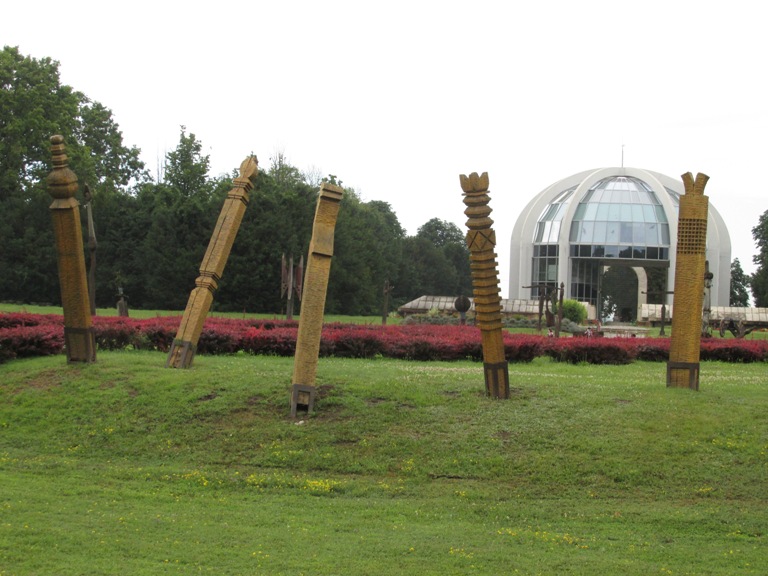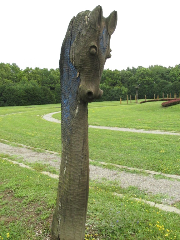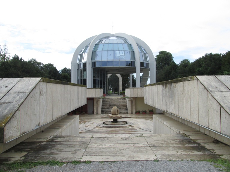 Între clădire și cimitirul memorial am traversat o alee mărginită de o construcție, jumătate în pământ, care evocă mânăstirile distruse sub ocupația otomană.