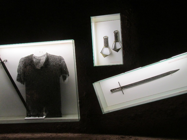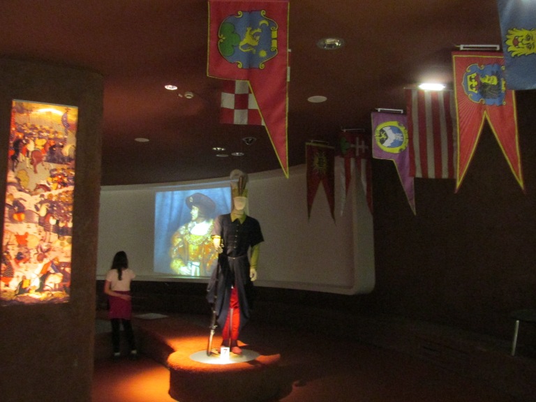 În muzeul puțin luminat am văzut etalate diverse tipuri de uniforme militare ale epocii, armuri, steaguri, arme de luptă, etc.