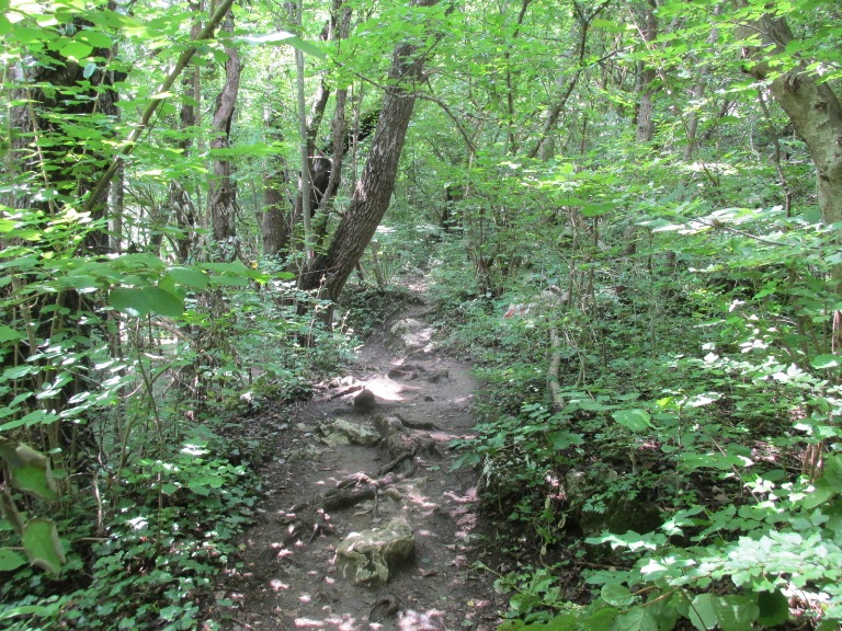 Pe o porțiune cărarea s-a îndepărtat de apă trecând prin mijlocul pădurii dar și acolo, din loc în loc, mici șuvoaie de apă își croiau drum la vale.
