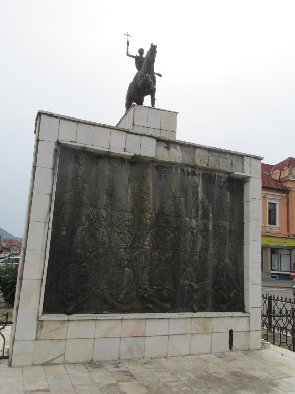 În drum am trecut pe lângă Monumentul lui Dinicu Golescu (1777-1828), ridicat în 1908. Statuia din bronz a boierului și cărturarului român, în mărime naturală, este postată pe un soclu, decorat cu busturile fiilor săi Ștefan, Nicolae, Radu și Alexandru, dintre care, la un moment dat, doi au ocupat postul de prim ministru al României.