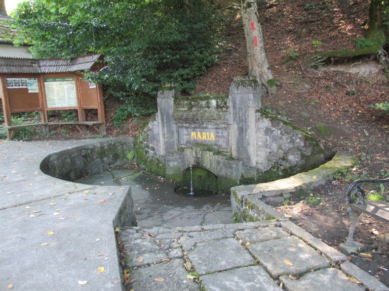 Pe dealul din apropiere s-a creat Drumul Crucii, cu 14 stații, în corpul de pe vârful pantei fiind pictate Învierea și Înălțarea lui Isus.
