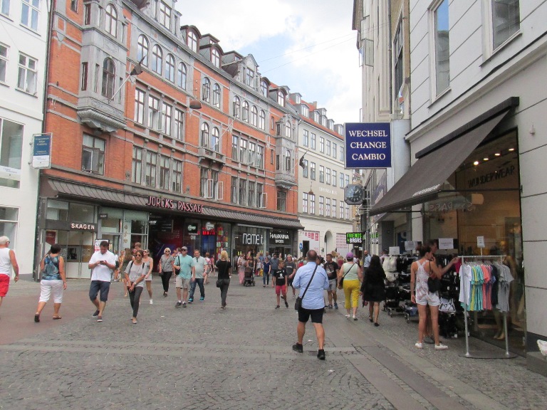 Din piață am străbătut strada pietonală Strøget, stradă cu multe magazine, firme, etc.