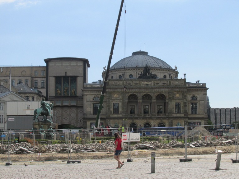 În sfârși, la capătul străzii am intrat în Kongens Nytorv. Un fapt pozitiv dar, spre neplăcerea mea, piața era în reconstrucție și restaurare.